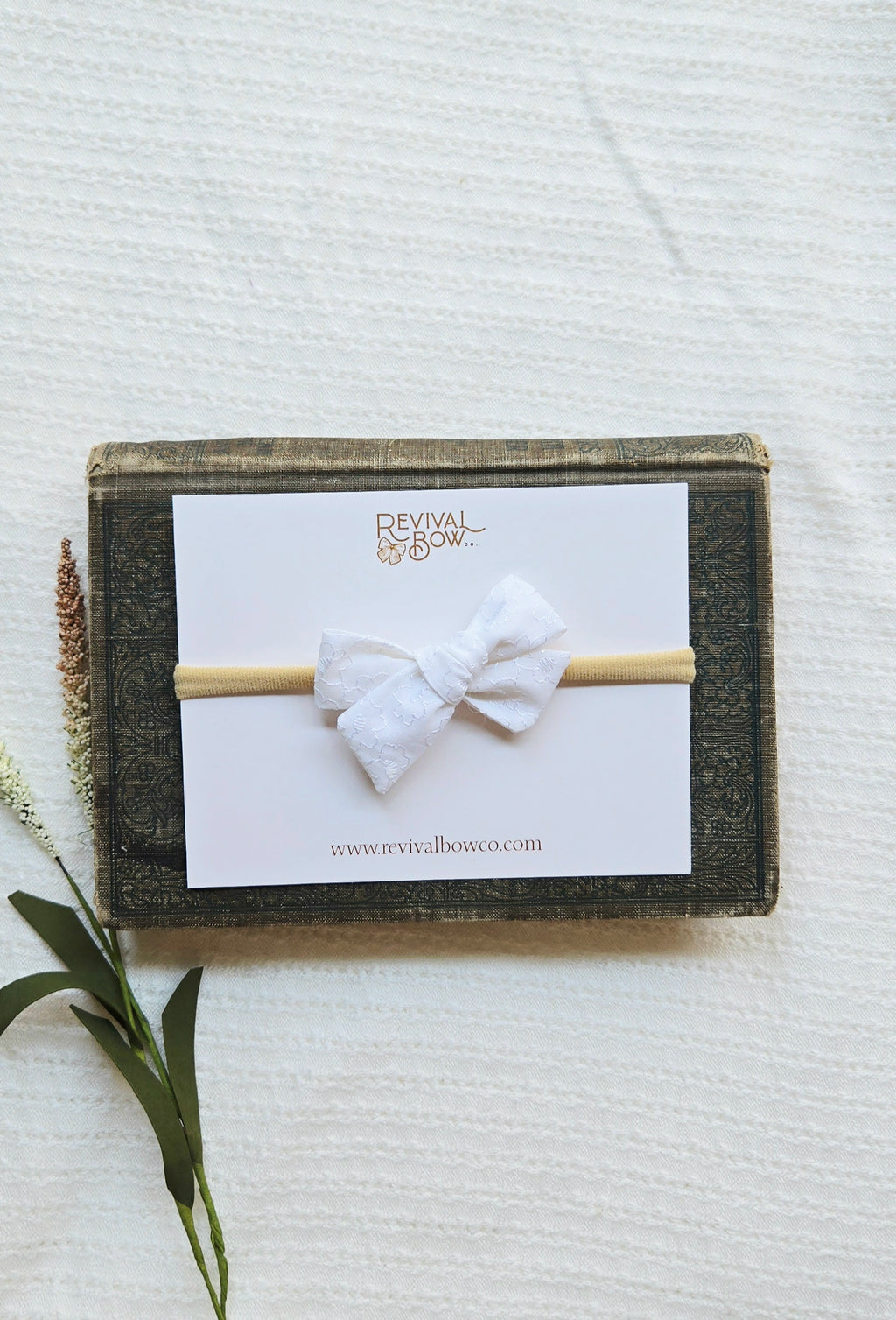 Mini Pinwheel Bow • Embroidered White Floral