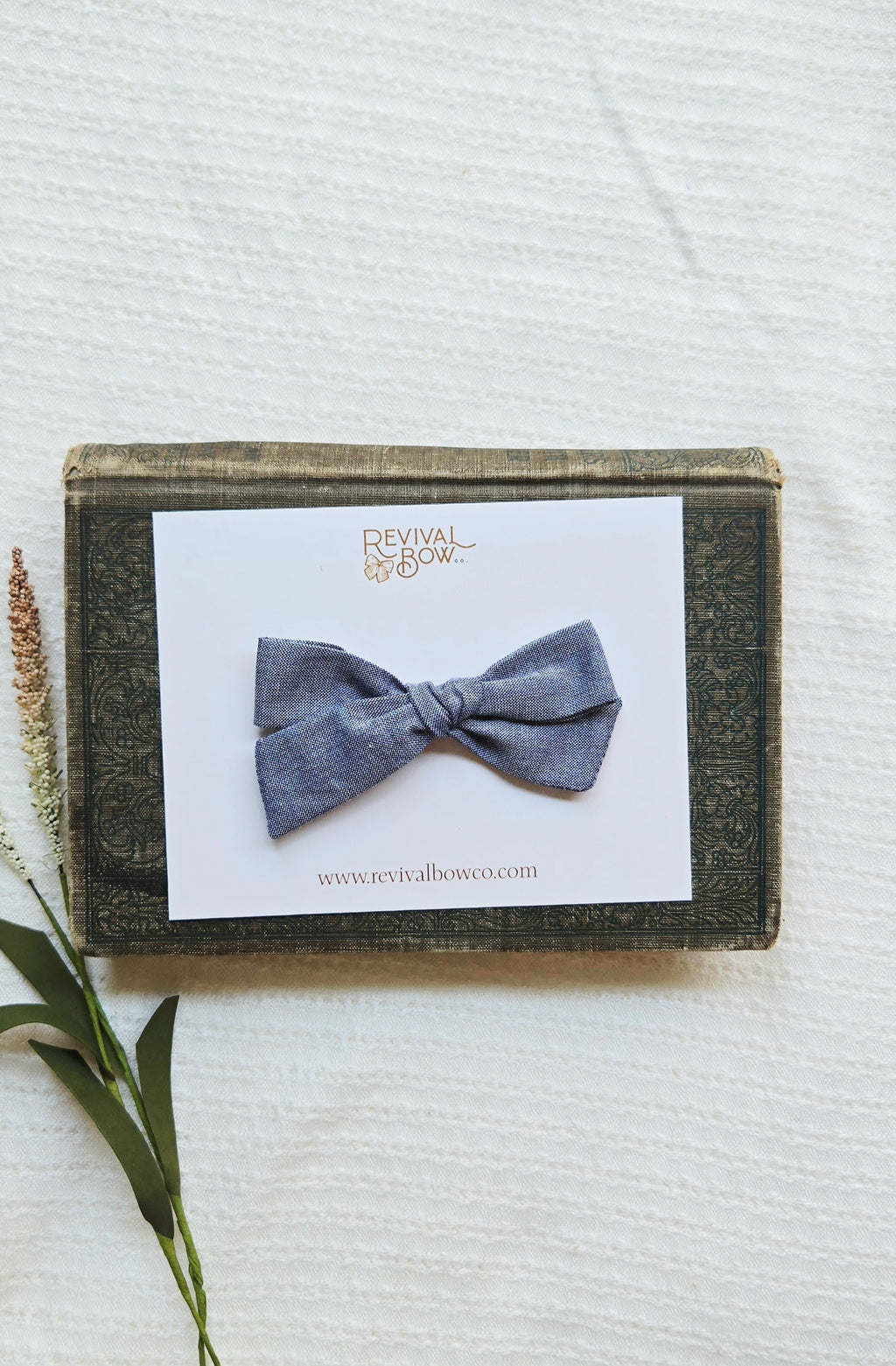 Mini Pinwheel Bow • Blue Chambray